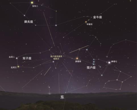 獵戶(hù)座流星雨輻射點(diǎn)及其周邊星座示意圖。(北京天文館供圖)