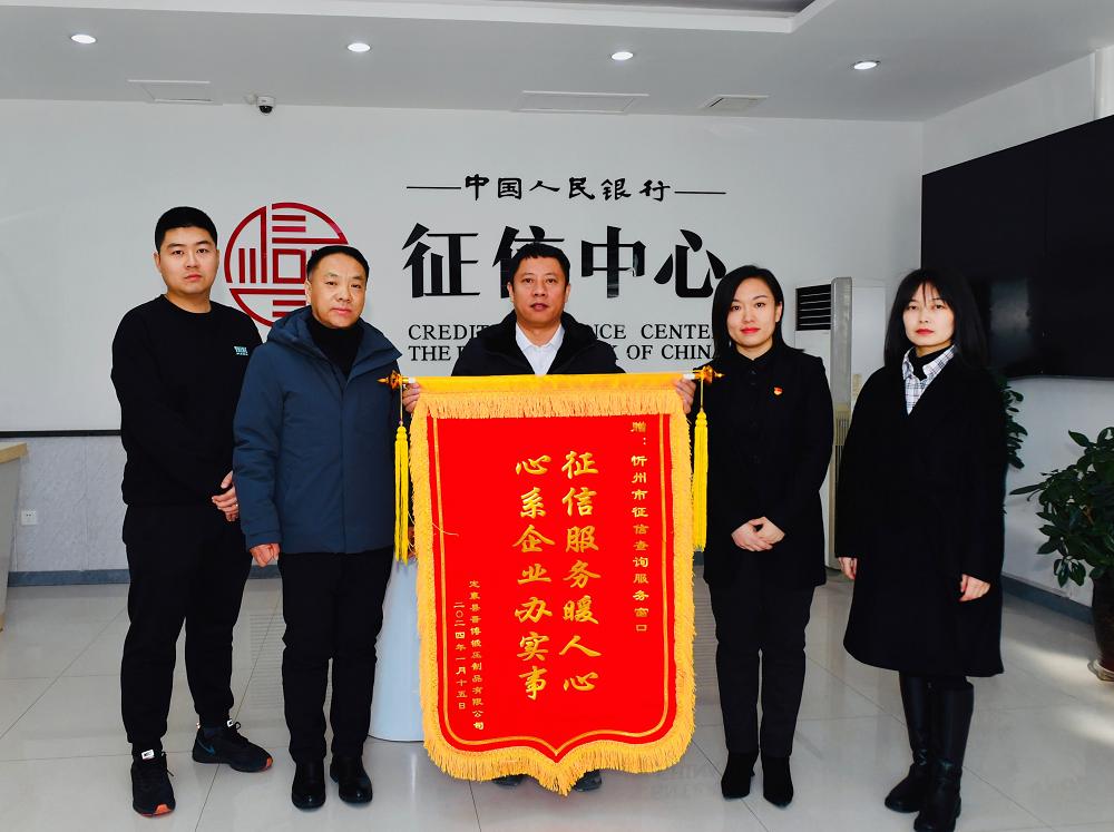 1月15日上午,定襄縣晉博鍛壓制品有限公司負(fù)責(zé)人將一面寫有“征信服務(wù)暖人心,心系企業(yè)辦實(shí)事”的錦旗送到了人民銀行忻州市分行征信查詢服務(wù)窗口,感謝為其高效處理征信異議,幫助企業(yè)解決資金往來受阻困境。