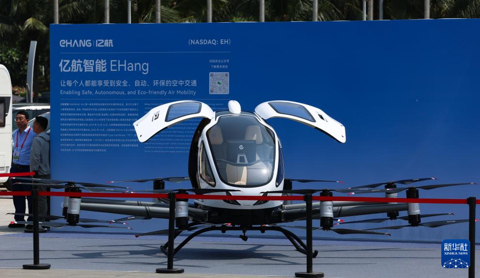 億航智能展出的無人駕駛載人航空器(4月13日拍攝)。 新華社記者 楊冠宇 攝