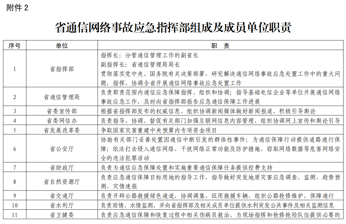 2.省通信網(wǎng)絡(luò)事故應(yīng)急指揮部成員單位職責