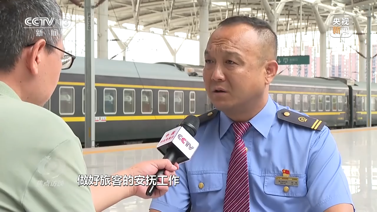 銀川客運段北京車隊副隊長 倪鵬:20點左右,我們通過廣播召集車廂里面的旅客是否有黨員、退役和現(xiàn)役軍人,到餐車來集合,目的是發(fā)揮黨組織作用,讓大家共同攻堅克難,做好旅客的安撫工作。