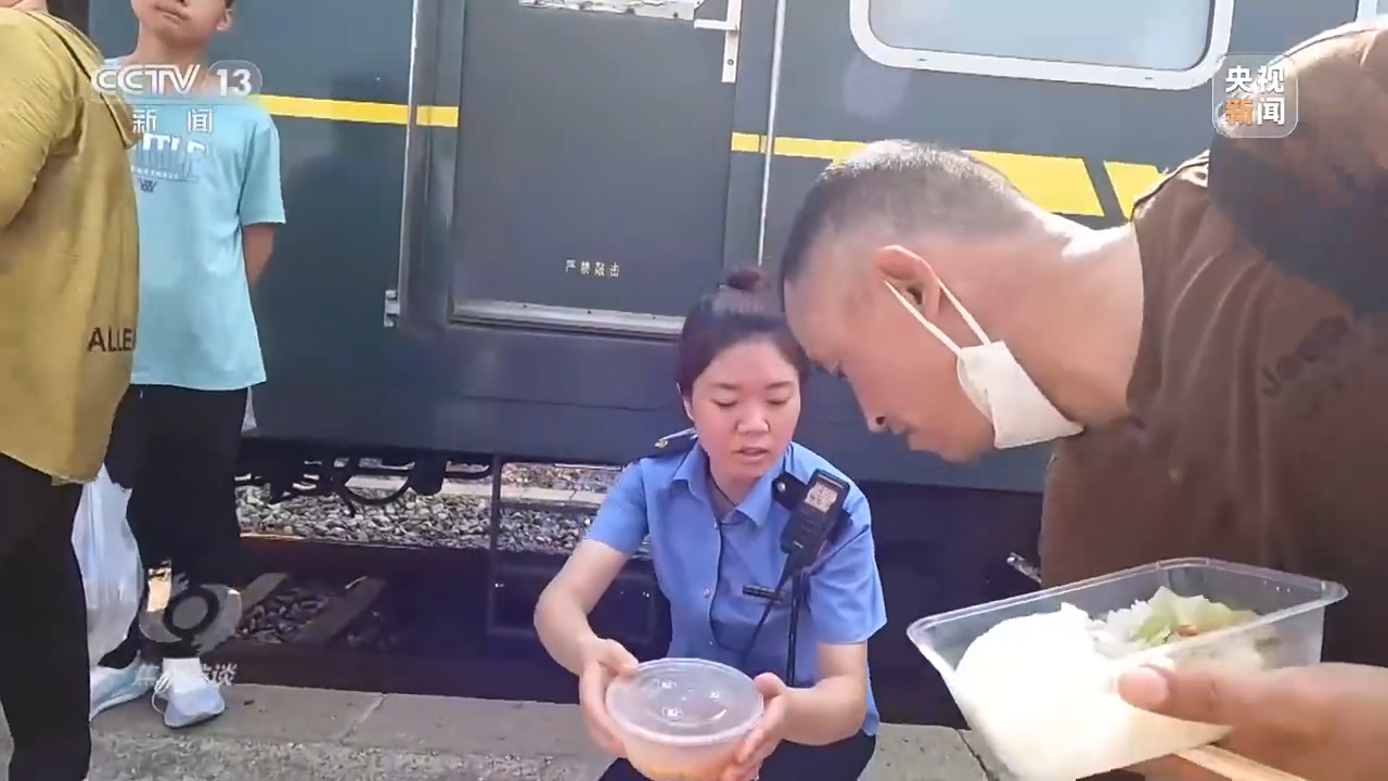 7月29日,K1178次列車從銀川出發(fā),7月30日因北京地區(qū)暴雨晚點,??吭谘睾映钦就?站臺。當天下午,列車晚餐供應已經(jīng)短缺。17時左右,沿河城站為列車補給方便面100件、八寶粥20箱、礦泉水5件、火腿腸2箱、雞蛋200個,免費為旅客發(fā)放。沿河城站是個只有3名工作人員的小站,物資很有限,加上被困的時間長,旅客的情緒開始激動。面對旅客的復雜情緒,乘務人員想到要發(fā)揮黨員的帶頭作用。