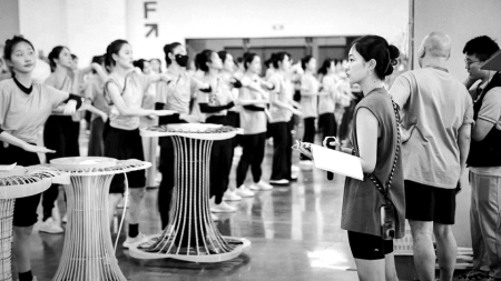 經(jīng)過層層選拔,最終組委會相關(guān)負責人在該院舞蹈系10余個舞蹈專業(yè)班級中選拔出100名參演學生(50名男學生、50名女學生),并于7月29日來到杭州亞運會開幕式現(xiàn)場“大蓮花”(奧體中心體育場),進行了兩個月的緊張排練。