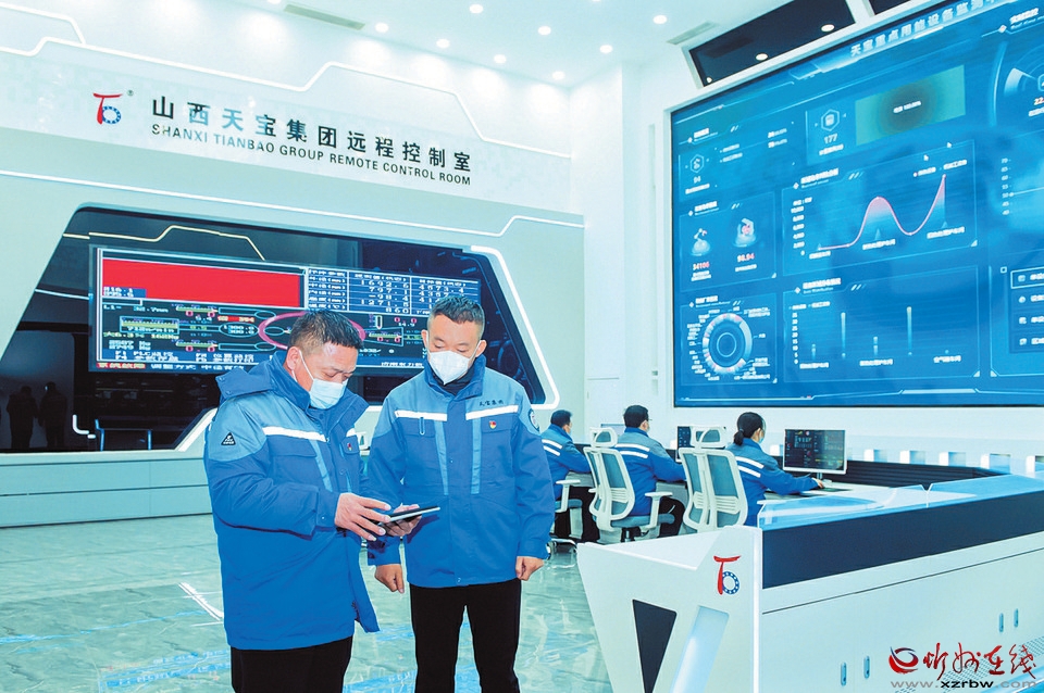 在遠程控制室的山西天寶集團有限公司黨支部書記、董事長胡大為正在通過大屏,實時查看訂單生產(chǎn)進度,了解設備運行狀況。