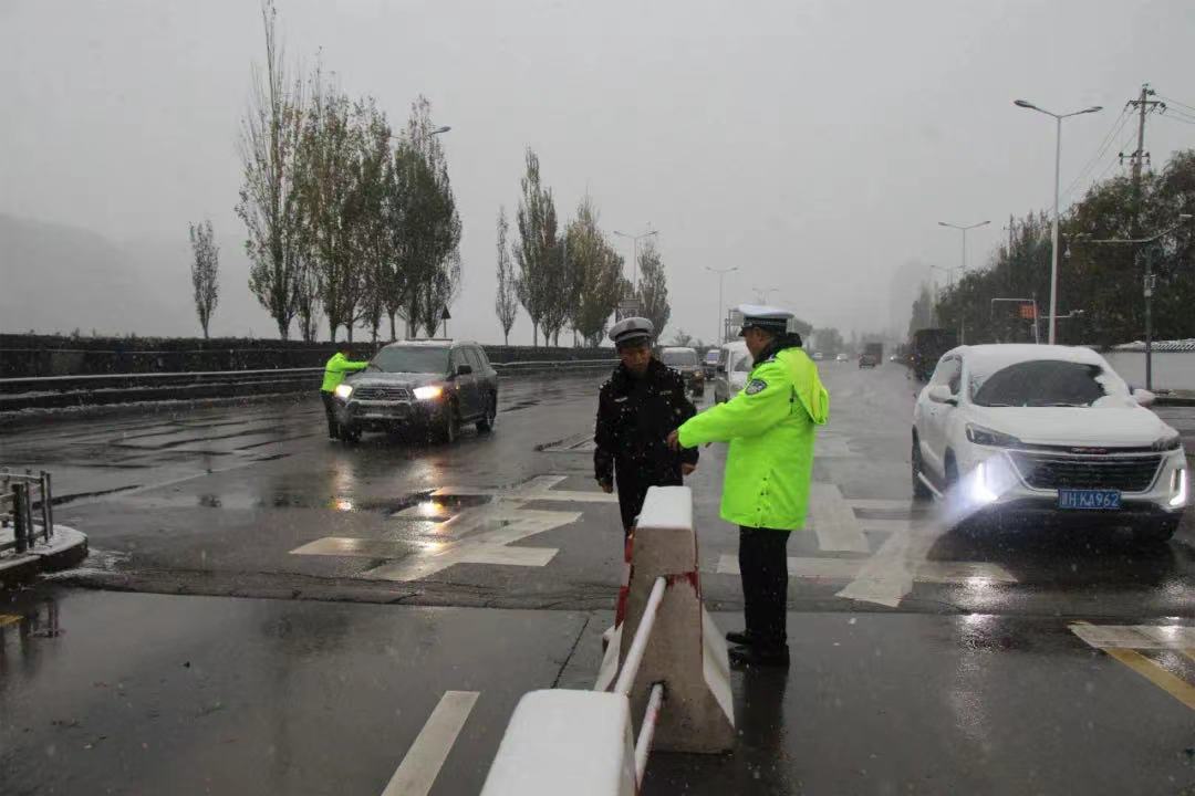 工作中,交警大隊迅速啟動惡劣天氣應急預案,民警輔警全員上崗,在轄區(qū)各主要路段、路口采取定點執(zhí)勤與流動巡邏相結合的方式,加大路面管控和指揮疏導力度,防止高峰時段因雪天路滑造成擁堵現(xiàn)象。