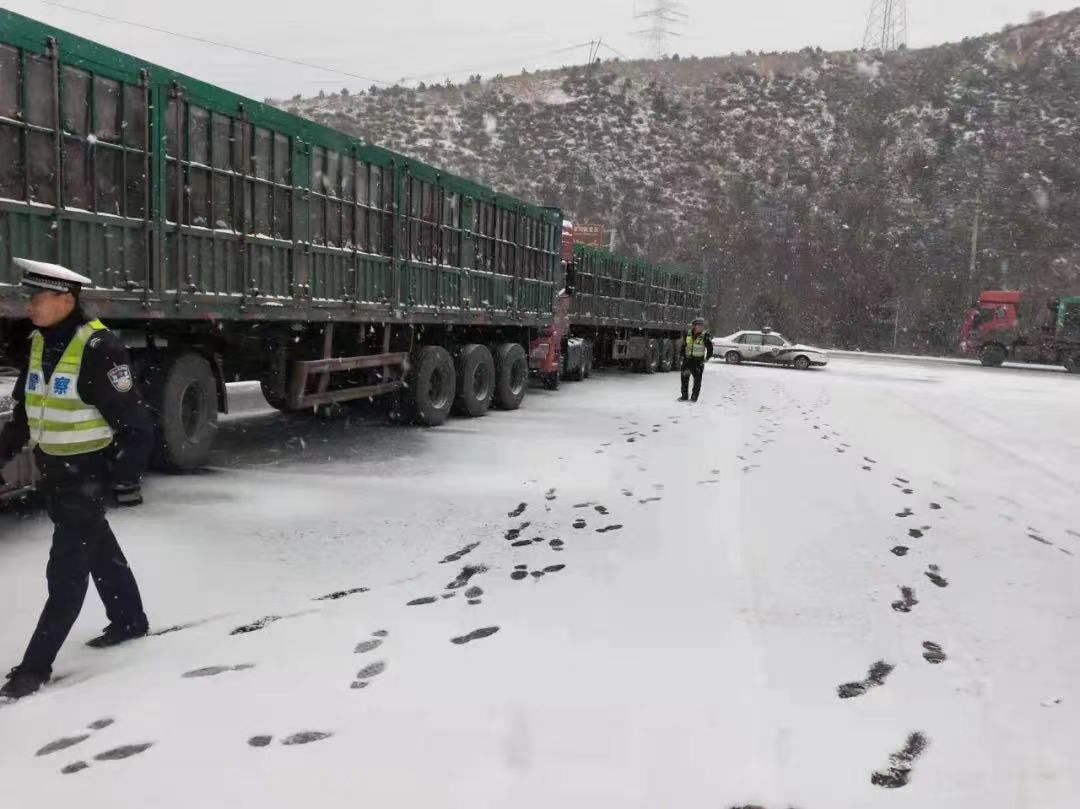 11月6日,寧武縣大范圍降雪。寧武交警陽方口中隊轄區(qū)路面被冰雪覆蓋,大型貨車滯留,爬坡難度大,極易造成側滑和碰撞。中隊民輔警以雪為令、迅速啟動惡劣天氣應急預案,全警上路,堅守一線,冒嚴寒、踏雪水,在重要路段、墊土鋪沙,讓滯留大貨車緩慢有序通行。確保道路安全暢通。