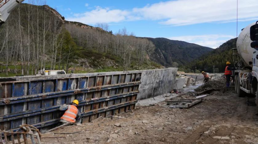 五臺(tái)山東線旅游公路工人正進(jìn)行擋墻施工作業(yè)
