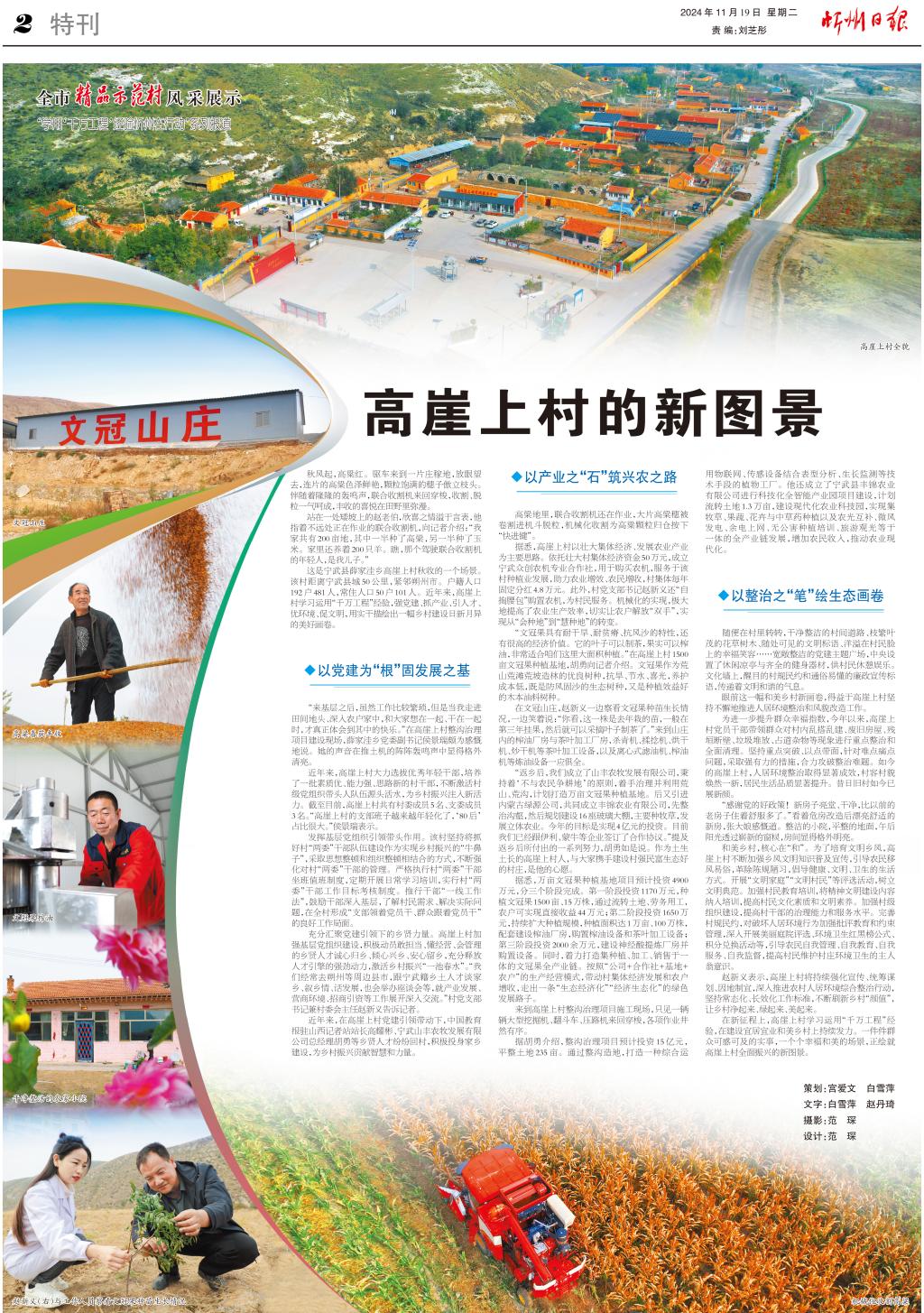 近年來,在高崖上村黨建引領(lǐng)帶動下,中國教育報駐山西記者站站長高耀彬、寧武山豐農(nóng)牧發(fā)展有限公司總經(jīng)理胡勇等鄉(xiāng)賢人才紛紛回村,積極投身家鄉(xiāng)建設(shè),為鄉(xiāng)村振興貢獻智慧和力量。