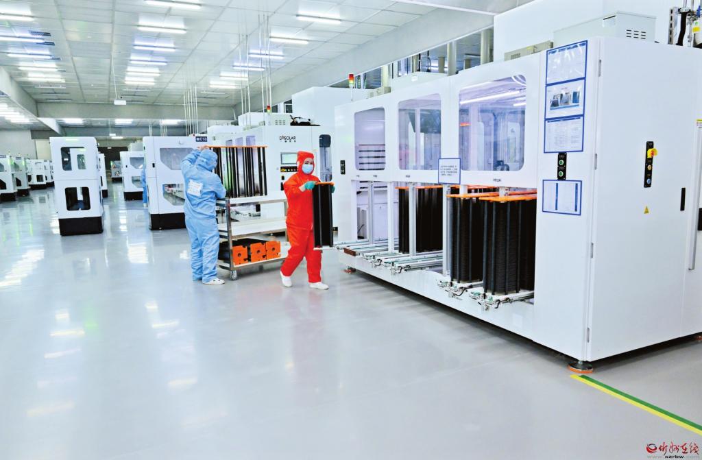 項目于2023年3月投產(chǎn)運營。目前,2號廠房已實現(xiàn)滿產(chǎn),1號廠房設備安裝調試已近尾聲,即將投產(chǎn)。項目全面投產(chǎn)達效后,產(chǎn)能達到“50GW電池+50GW組件”,可實現(xiàn)年產(chǎn)值60億元,年上繳稅收3億元,提供就業(yè)崗位1400個。