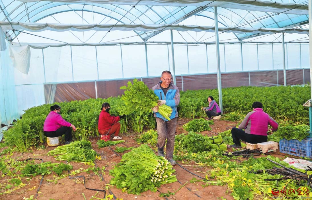 “今年收成咋樣?”馮國紅鉆進(jìn)溢滿芹菜清香的大棚詢問?!耙粋€(gè)大棚4畝田,一年四季都生錢。今年賺個(gè)10萬元沒問題?!狈N植戶李大爺快人快語。一旁正將蔬菜裝筐的村民郭印蘭也笑著搭話:“謝謝馮書記介紹我到這里來打工,現(xiàn)在我們不出村就能掙到錢了!”