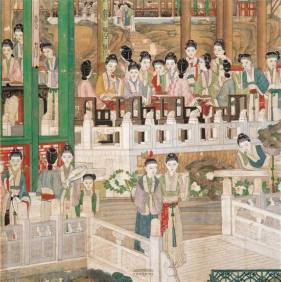 全圖共繪人物173人,除賈寶玉是男性外,其余皆為女子。這其中有白發(fā)蒼蒼、面容和藹的賈母,有面容姣好、秀麗端莊的眾位閨秀小姐,還有或立或行、穿梭服侍的丫鬟侍婢等。