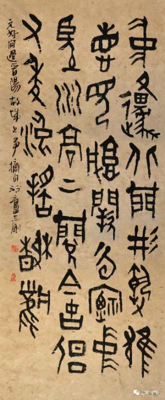 志剛先生因篆悟書,于書入篆,實(shí)際上就是兼顧了書寫的本質(zhì),找到了體現(xiàn)“漢字”本性的落點(diǎn)。對于一個(gè)書法家來講,除了解決書法的共性特征外,必須解決自己的個(gè)性特征才能名符其實(shí),否則就很難有較高的成就。因?yàn)椤白钡木C合性和獨(dú)特表現(xiàn)性,正好可以給書寫者提供一種理解書法特質(zhì)的通道,那就是如何在更為有限的空間里呈現(xiàn)漢字審美的問題!在篆里,漢字固定的型,卻可以,而且必須根椐不同的語境有所改變才會呈現(xiàn)出藝術(shù)魅力。也就是先能“有”,然后再進(jìn)入“無”,從“有”入“無”就可以得自由,如果能夠解決這一問題,并將之綜合體現(xiàn)在書法創(chuàng)作中自然就會有在非同凡響的面貌。