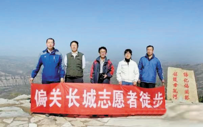 賀文(左一)與偏關(guān)長城志愿者尋找黃河邊墻
