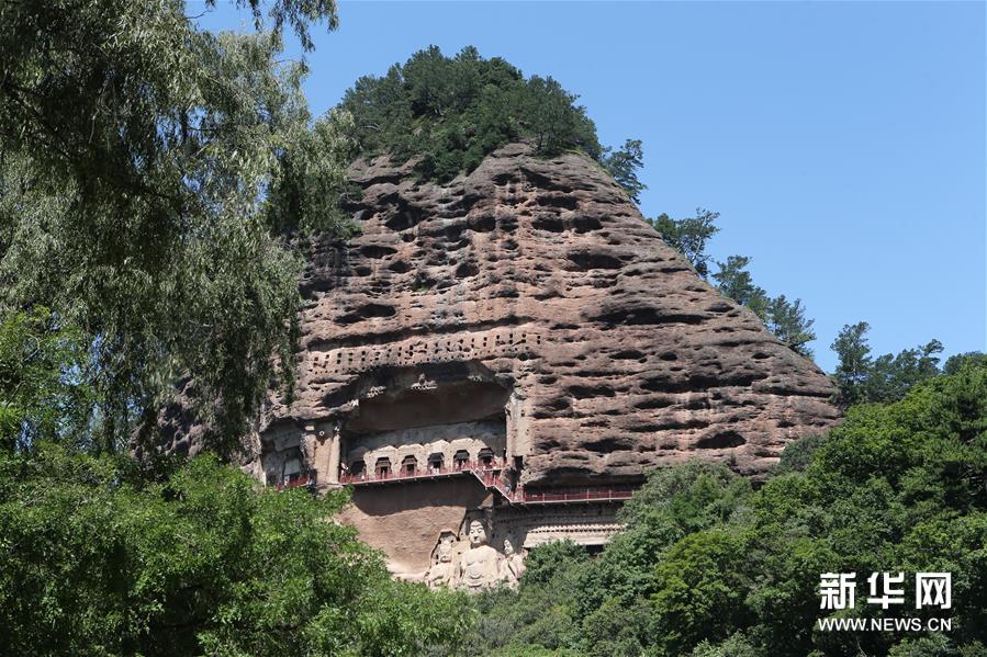 麥積山石窟位于甘肅省天水市境內(nèi),始建于距今約1600年的后秦,現(xiàn)存窟龕221個(gè),各類造像一萬余身,以其精美的泥塑藝術(shù)聞名,被稱為“東方雕塑陳列館”。