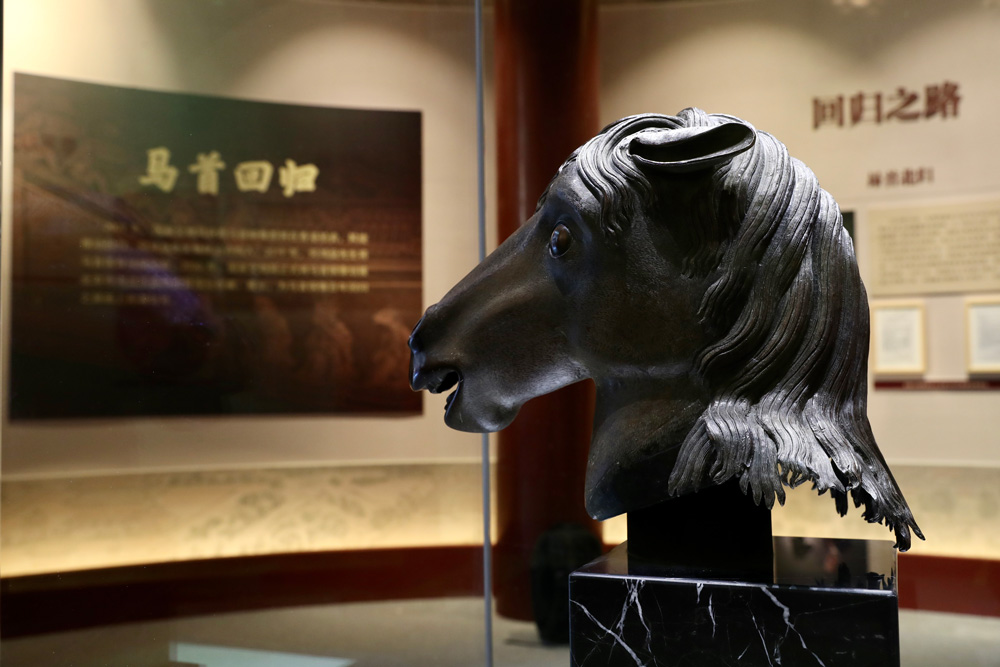 圓明園馬首銅像,為清代圓明園長(zhǎng)春園西洋樓建筑群海晏堂外十二生肖獸首噴泉主要構(gòu)件之一。1860年英法聯(lián)軍侵入北京,圓明園慘遭劫掠焚毀,馬首銅像與其他11尊獸首銅像一同流失海外。