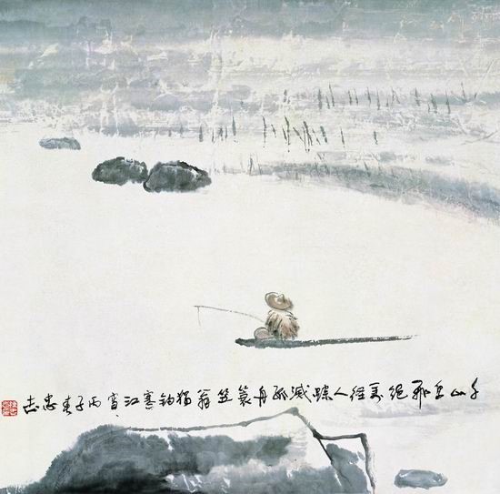 陳忠志《獨(dú)釣寒江雪》。來(lái)自人民網(wǎng)書(shū)畫頻道“人民美術(shù)館”