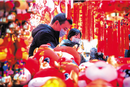 隨著春節(jié)的日益臨近,太原市的市民開始選購年貨,迎接新春佳節(jié)的到來。圖為1月31日,市民在太原市迎澤區(qū)雙塔寺街的一家市場內(nèi)選購年貨。(新華社記者 楊晨光 攝)