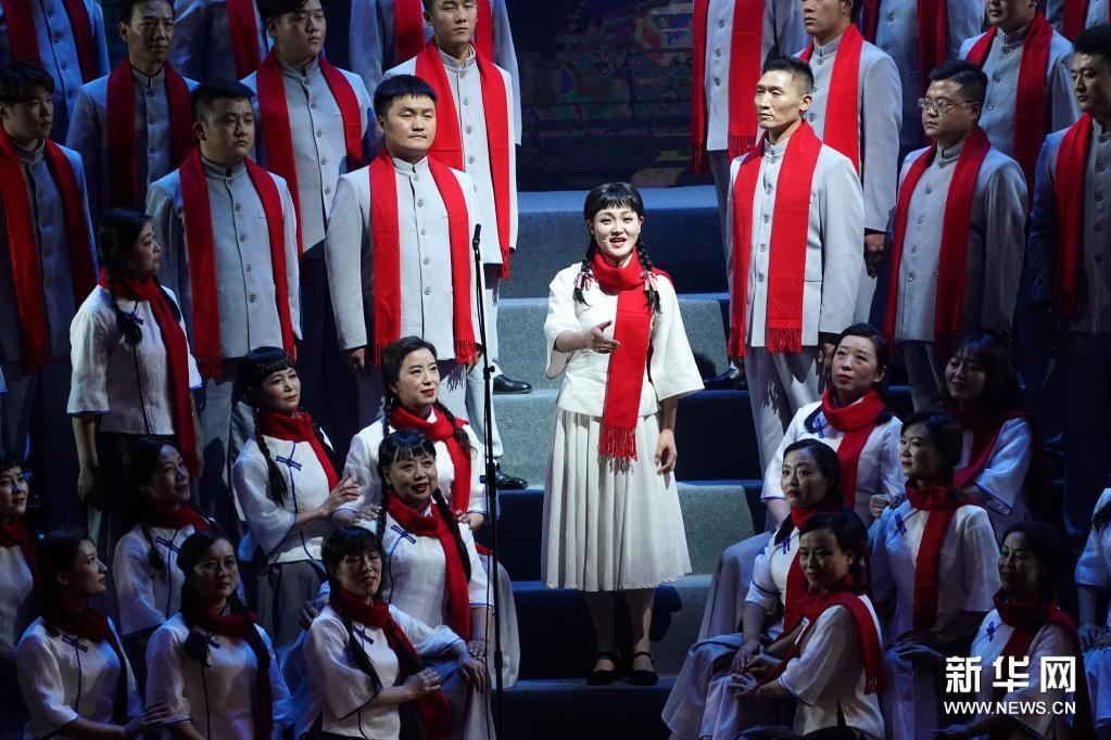 6月30日,在山西大劇院,演員在合唱《國際歌》。當日,山西省慶祝中國共產(chǎn)黨成立100周年文藝匯演在山西省太原市山西大劇院舉行。新華社記者 詹彥 攝