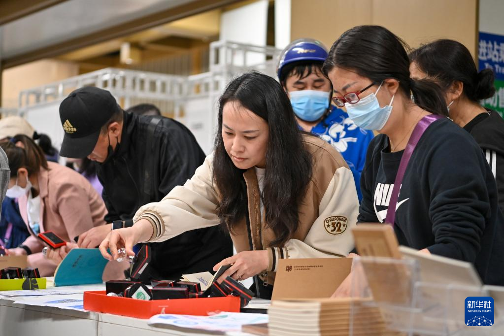 5月9日,在太原地鐵2號線大南門站,市民在第三屆“印記太原”文化創(chuàng)意設計展上體驗古城游集章活動。