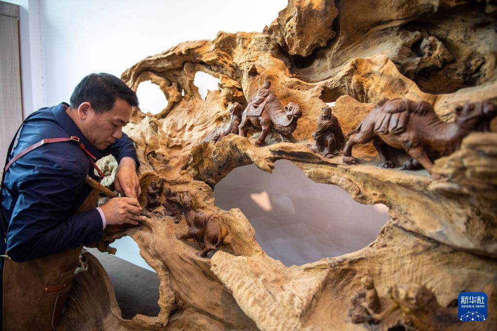 洞口木雕已被正式列入湖南省省級非物質(zhì)文化遺產(chǎn)名錄,木雕產(chǎn)品遠銷70多個國家和地區(qū)。新華社記者 陳思汗 攝