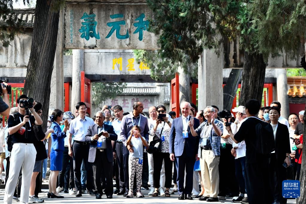 6月27日,參加世界互聯(lián)網(wǎng)大會(huì)數(shù)字文明尼山對(duì)話的中外與會(huì)嘉賓和游客在曲阜孔廟參觀。