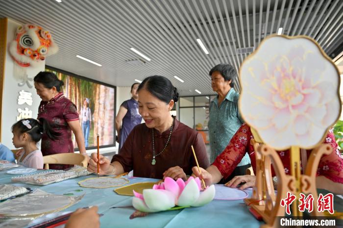 圖為游客體驗(yàn)制作手工團(tuán)扇。 俞靖 攝