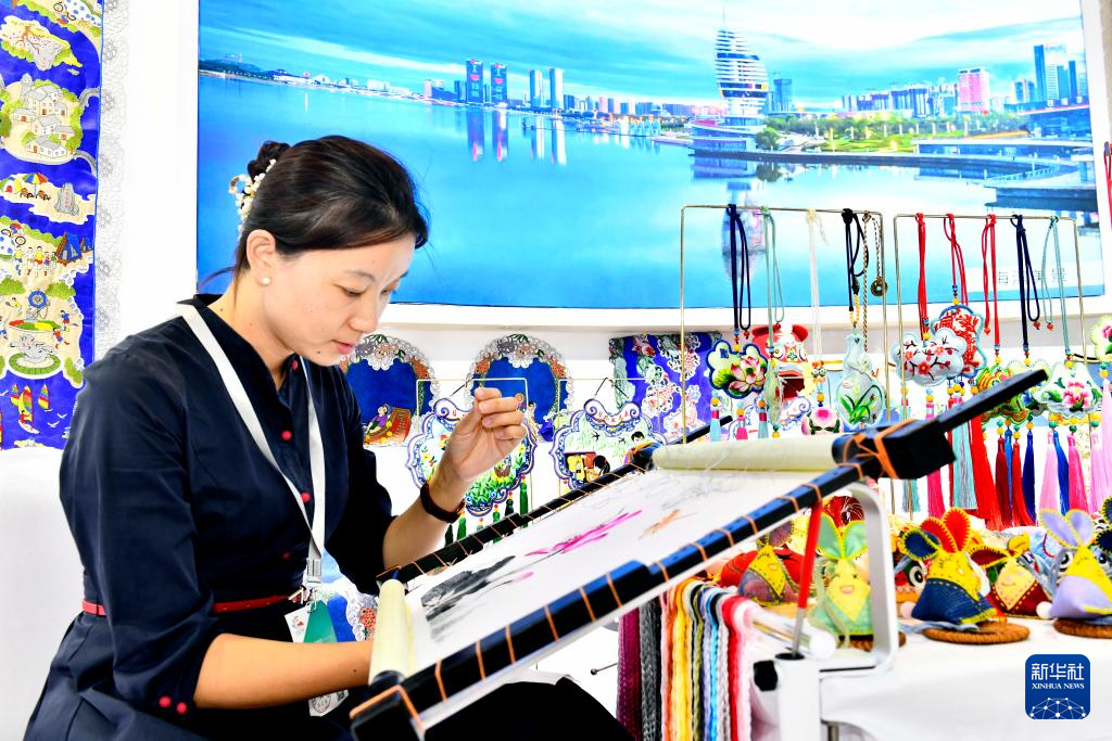 9月16日,在山東國際會展中心,來自湖南的非遺傳承人現(xiàn)場展示湘繡技藝。