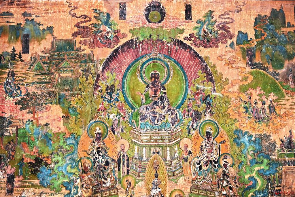 五臺山現(xiàn)存的寺廟壁畫歷史悠久,跨越年代廣,分布相對集中,涵蓋了唐、宋、金、元、明、清、民國各個朝代。而現(xiàn)存完好的壁畫多集中在五臺、繁峙兩縣,其中比較著名的除了東大殿壁畫外,還有南禪寺西配殿元代壁畫,繁峙巖山寺金代壁畫,繁峙公主寺以及五臺山佛光寺文殊殿、南山寺明代壁畫,五臺國都殿村關羽壁畫,五臺山龍泉寺文殊殿民國壁畫等。