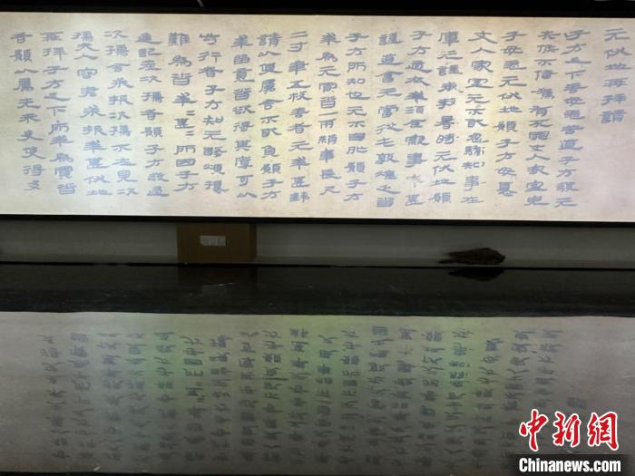 圖為9月7日,甘肅蘭州,甘肅簡牘博物館里展出敦煌馬圈灣遺址出土的漢簡“九九之?dāng)?shù)”。中新社記者 九美旦增 攝