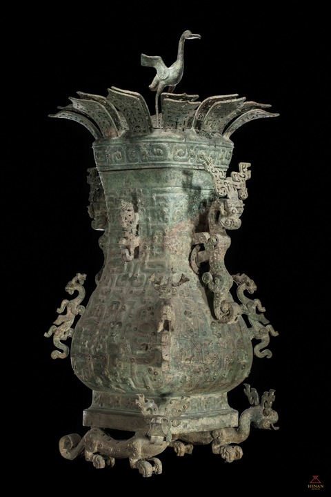 在河南博物院第四展廳,蓮鶴方壺展柜前總是里三層外三層圍滿了慕名而來的游客,就為一睹這件“青銅時代的絕唱”。蓮瓣舒放、鶴鳴九皋,兩千多年來,蓮鶴方壺默默訴說著中華文脈永續(xù)傳承。