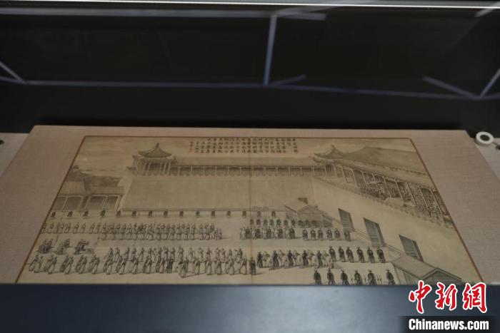 17世紀(jì),隨荷蘭使團(tuán)出行的約翰·尼霍夫在版畫(huà)中描繪了使團(tuán)在太和殿廣場(chǎng)等待順治帝接見(jiàn)的場(chǎng)面;堪稱18世紀(jì)銅版畫(huà)藝術(shù)的巔峰之作《乾隆平定準(zhǔn)部回部戰(zhàn)圖》,于乾隆年間由意大利人郎世寧等宮廷西洋畫(huà)師奉旨繪制。展覽展出了《乾隆平定準(zhǔn)部回部戰(zhàn)圖》的其中一幅作品真跡,繪圖精美、鐫刻精良,難得一見(jiàn)。
