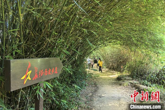 7月16日,游客重走江西贛州于都縣祁祿山鎮(zhèn)的紅軍長(zhǎng)征小道。吳鵬泉 攝