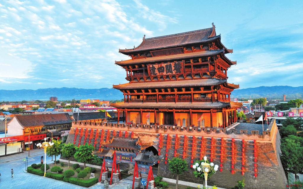 邊靖樓位于縣城中央,又名譙樓,俗稱鼓樓,始建于明洪武七年(1374年),被著名長城專家羅哲文譽(yù)為“萬里長城第一樓”。成化七年(1471年),被火焚毀;成化十二年(1476年),由都督僉事劉寵、副使蔡麟加臺(tái)重建。樓通高40米,由磚砌臺(tái)基、木構(gòu)樓身和登臺(tái)步道三部分組成。樓身面寬七間,進(jìn)深五間,三層四檐歇山頂,四周設(shè)圍廊。樓南三層懸“聲聞四達(dá)”匾,長10.02米,寬3.15米;樓北三層懸“威鎮(zhèn)三關(guān)”匾,長10.2米,寬2.9米。此兩塊巨匾不僅為現(xiàn)存國內(nèi)最大的木質(zhì)古牌匾,也是亞洲最大的木質(zhì)古牌匾。
