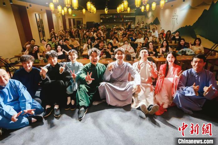 “之前只在線上聽(tīng)過(guò)傳統(tǒng)相聲,來(lái)了才知道相聲還能這么玩,我錄制了視頻發(fā)在朋友圈,好幾個(gè)朋友都說(shuō)要來(lái)打卡?!薄癦世代”張倩是這家相聲館的“老粉”,每周從不缺席?!拔疫€‘安利’給了丈夫和孩子,我們經(jīng)常一家三口來(lái)聽(tīng)相聲,孩子現(xiàn)在都能說(shuō)兩句貫口了?!睆堎徽f(shuō)。