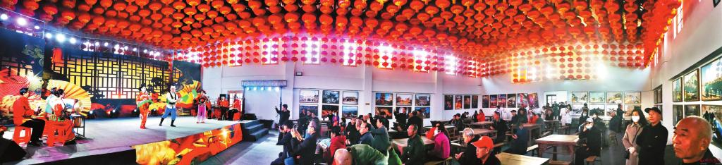 忻州古城職工俱樂部根據(jù)轄區(qū)群眾的工作和休息時間情況,科學合理安排各項活動,極大地豐富了群眾的業(yè)余文化生活,受到市民和游客的歡迎。圖為市民和游客在觀看忻藝歌舞團帶來的民歌二人臺專場演出。(張存良 攝)