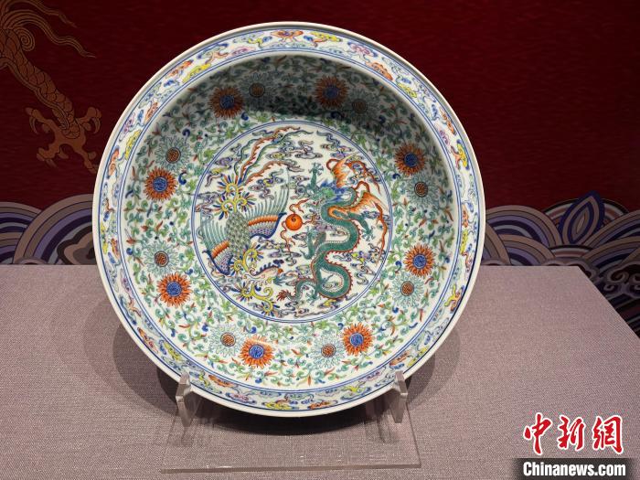沈陽故宮院藏國家一級文物“清雍正斗彩龍鳳紋大盤”。記者 韓宏攝