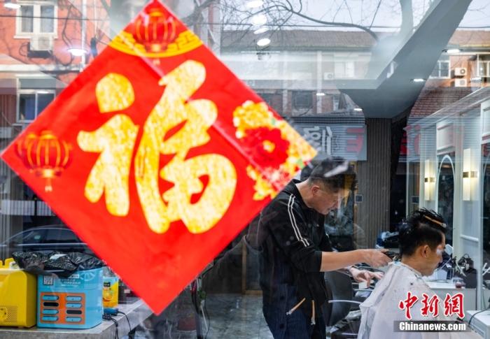 資料圖:市民在北京市西城區(qū)一家發(fā)廊理發(fā),期許吉祥兆頭。中新社記者 侯宇 攝