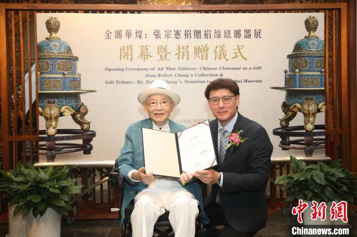 5月8日,“金瑯華燦:張宗憲捐贈(zèng)掐絲琺瑯器展”捐贈(zèng)儀式在上海博物館人民廣場(chǎng)館舉行。 中新社記者 張亨偉 攝