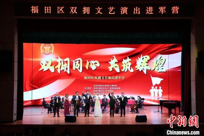 在深圳福田某部隊駐地舉辦的雙擁文藝演出中,有著深厚軍旅情結(jié)的歌唱家、天津音樂學(xué)院院長王宏偉帶領(lǐng)該院師生,演出了室內(nèi)樂《炎黃風情》、弦樂《梁山伯與祝英臺》、鋼琴三重奏《布宜諾斯艾利斯四季——夏、冬》等經(jīng)典曲目以及《敕勒歌》《絨花》《草原上升起不落的太陽》《舉杯吧,朋友》《兒行千里》《天路》《在希望的田野上》等歌曲,為駐地官兵送上一份文藝大餐。