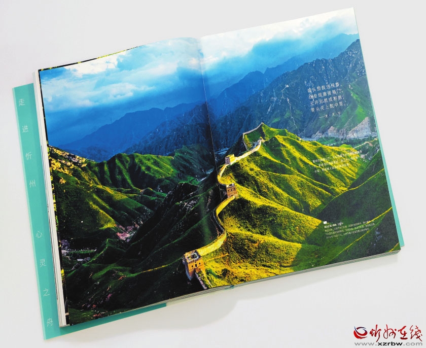 在視覺呈現(xiàn)上,為了追求最佳的閱讀體驗(yàn),書中每一篇文章都精雕細(xì)琢,每一張攝影作品選用也極其嚴(yán)苛。要求文字內(nèi)容與圖片內(nèi)容都要一一對應(yīng),可以說每一個(gè)對開頁面,都是一次全新的設(shè)計(jì)。就這樣,把忻州的美好風(fēng)光同當(dāng)?shù)氐娜宋臍v史有機(jī)地融合在一起,給人以賞心悅目的享受和豐富知識的熏陶,讓人既覺得身臨其境,又心馳神往。