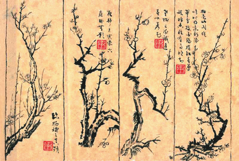 史載彥的梅花作品多為“墨梅”,有明顯的宋人風(fēng)格。據(jù)史家考證,最早用水墨創(chuàng)作梅畫的應(yīng)是北宋僧人釋仲仁。釋仲仁,號華光,南宋書畫家趙孟頫曾說,“世之論墨梅者,皆以華光為稱首”,因而釋仲仁也被譽為“墨梅始祖”,其所撰《華光梅譜》成為首部較為系統(tǒng)的畫梅專著。釋仲仁后,湯正仲、徐渭、陳錄、陳繼儒等在墨梅技法上造詣頗深,使水墨梅藝漸成青出于藍之勢。