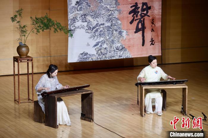 2024年12月,中國(guó)音樂學(xué)院“弦外有琴聲——古琴專場(chǎng)音樂會(huì)”,該校國(guó)樂系副教授黃梅(右)和碩士研究生李孟潔(左)演奏雙琴版《流水》。中新社記者 易海菲 攝