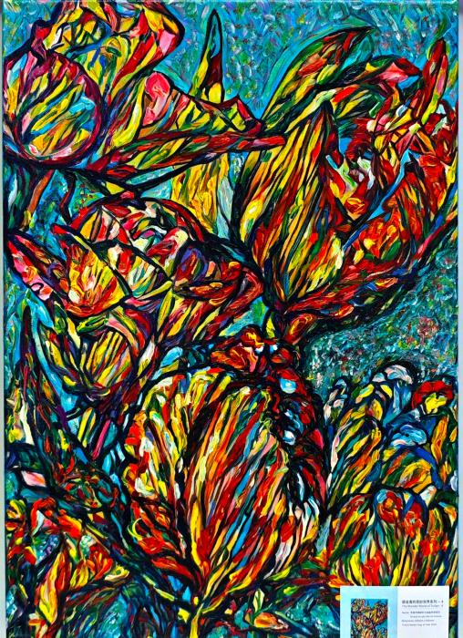 此次分享會還展出了孫寬的油畫作品郁金香系列十余幅。她的油畫藝術(shù)風(fēng)格,以強(qiáng)烈的色彩和抒情性著稱,受現(xiàn)代派,后現(xiàn)代派繪畫影響,擅長通過冷色調(diào),尤其是藍(lán)色表達(dá)情感,作品如《落地生根》《藍(lán)色突圍》《核》等被評為詩性繪畫。