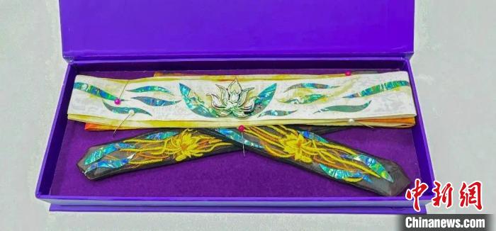 一旁,葉晶晶則忙著給影視劇劇組提供非遺道具?!芭c《永夜星河》制作團(tuán)隊的合作,標(biāo)志著我們首次嘗試將傳統(tǒng)工藝與現(xiàn)代影視藝術(shù)進(jìn)行融合。我們結(jié)合了傳統(tǒng)的螺鈿工藝與絲綢工藝,不僅推出了螺鈿發(fā)帶,還設(shè)計了蓮花頭飾和掛飾。每一步驟都經(jīng)過精心策劃和細(xì)致制作,最終讓這些螺鈿飾品成為劇中最閃亮的道具?!?/p>