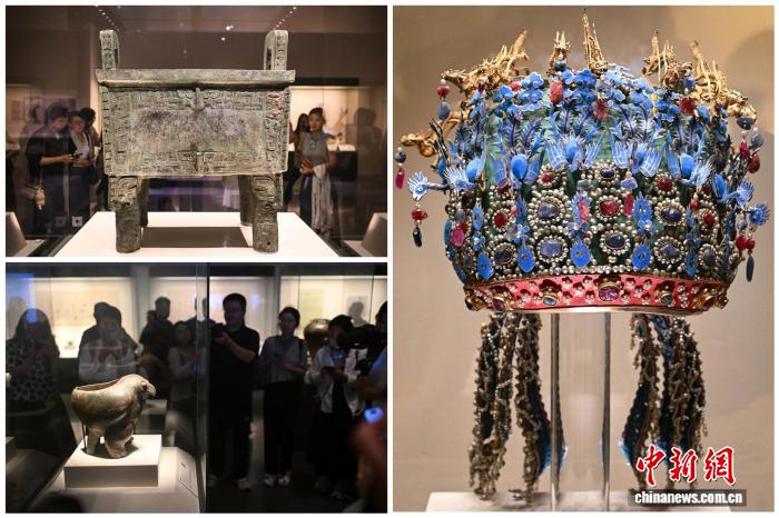中新網(wǎng)北京7月21日電 (記者 應妮)從鷹形陶鼎、紅山文化玉龍、四羊青銅方尊、錯金銀云紋青銅犀尊,到擊鼓說唱俑、秘色葵口瓷盤、孝端皇后鳳冠、霽青釉金彩海晏河清尊……“美之道”文化項目于21日在中國國家博物館舉行首發(fā)式。