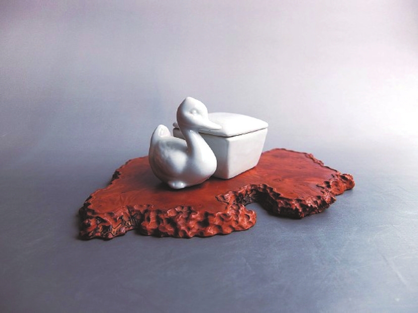 過去的二十多年間,這只小鴨始終擺在我的書案上。每當(dāng)鈐印時(shí),看著它繞缸游動(dòng)的姿態(tài),總會(huì)想起《考工記》中“天有時(shí),地有氣,材有美,工有巧”的造物真諦。