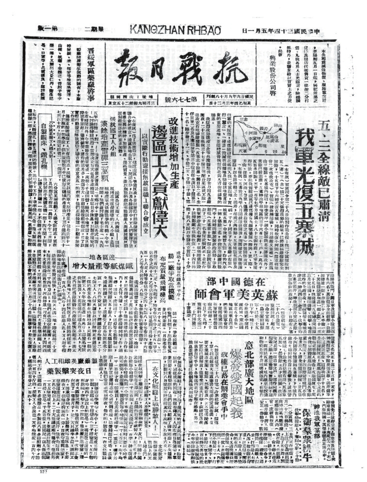 抗戰(zhàn)時期,忻州既是晉察冀、晉綏兩大根據(jù)地的中心腹地,也是抗戰(zhàn)初期全面抗敵的主戰(zhàn)場。忻州以其地理咽喉、戰(zhàn)役要沖、根據(jù)地核心和人民戰(zhàn)爭典范的多重角色,成為抗日戰(zhàn)爭中抵御日軍侵略、堅持?jǐn)澈蠖窢幍膽?zhàn)略支點之一。其歷史貢獻不僅體現(xiàn)在軍事上,更彰顯了中華民族不屈不撓的抗戰(zhàn)精神。隨著八路軍平型關(guān)大捷、雁門關(guān)伏擊戰(zhàn)、夜襲陽明堡飛機場等戰(zhàn)役勝利,1937年11月7日晉察冀軍區(qū)在五臺成立。12月11日,《抗敵報》誕生。1940年11月,《抗敵報》改名為《晉察冀日報》,鄧拓任報社主任?!犊箶硤蟆纷畛踉谖迮_石嘴村石印,后改鉛印。1938年1月,晉察冀邊區(qū)行政委員會在河北阜平成立,兩月后,邊區(qū)行政委員會遷駐五臺射虎川臺麓寺,報社、印刷廠分駐海慧庵、蛤蟆石古佛寺。1940年9月18日,晉綏分局機關(guān)報《抗戰(zhàn)日報》,伴隨著隆隆炮火聲,在距離忻州不遠(yuǎn)的興縣艱難創(chuàng)刊。自此,那些戰(zhàn)地記者、通訊員甚或普通民眾,有名的,無名的,以個人名義,以集體名義,在極其艱苦的條件下,用滾燙筆尖秉筆直書,為我們珍存了那些發(fā)生在忻州大地上前仆后繼、可歌可泣的抗戰(zhàn)故事,也讓今天的人們一旦捧讀就會熱血沸騰。
