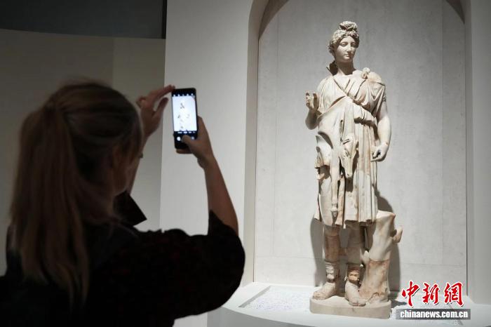 展廳里,宙斯(朱庇特)雕像、波塞冬(尼普頓)頭像等近20件大型神像,揭示出古羅馬人對古希臘神話的“創(chuàng)造性轉化”。其中一件狩獵女神阿爾忒彌斯(狄安娜)雕像,文物保護員已鑒定出127件不同的大理石碎片,反映出制作者的高超技藝。