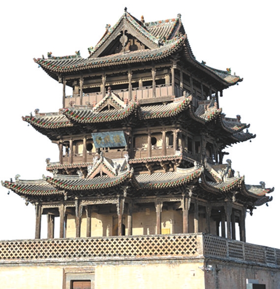 山西運城萬榮縣秋風樓的每一層都裝飾著懸魚