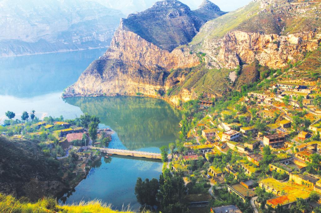 在黃河上形如半島的一個回水灣上,清清的關河水從東邊流來,匯入了黃河。對面是高山和村莊上的排排石頭窯洞,一層一層地排列在緩坡的綠蔭里。河邊有果圃,河中有捕魚船,關河上還有石拱平面橋,過得去卡車,更過得去羊馬驢騾。從山水形勢上看,這里是高崖深壘,有渡口,從大面上看是一個死角,然而又是一個興于明盛于清的重要水旱碼頭,有長城、有烽火臺和古堡??滴跛氖辏ü?701年)西北放墾,這里成為北糧進入晉地的轉運點。北上的晉商也由此進入黃河上游,關河口也就成了糧食、茶葉、布匹和皮毛、牲畜交流互換的水上集散地。